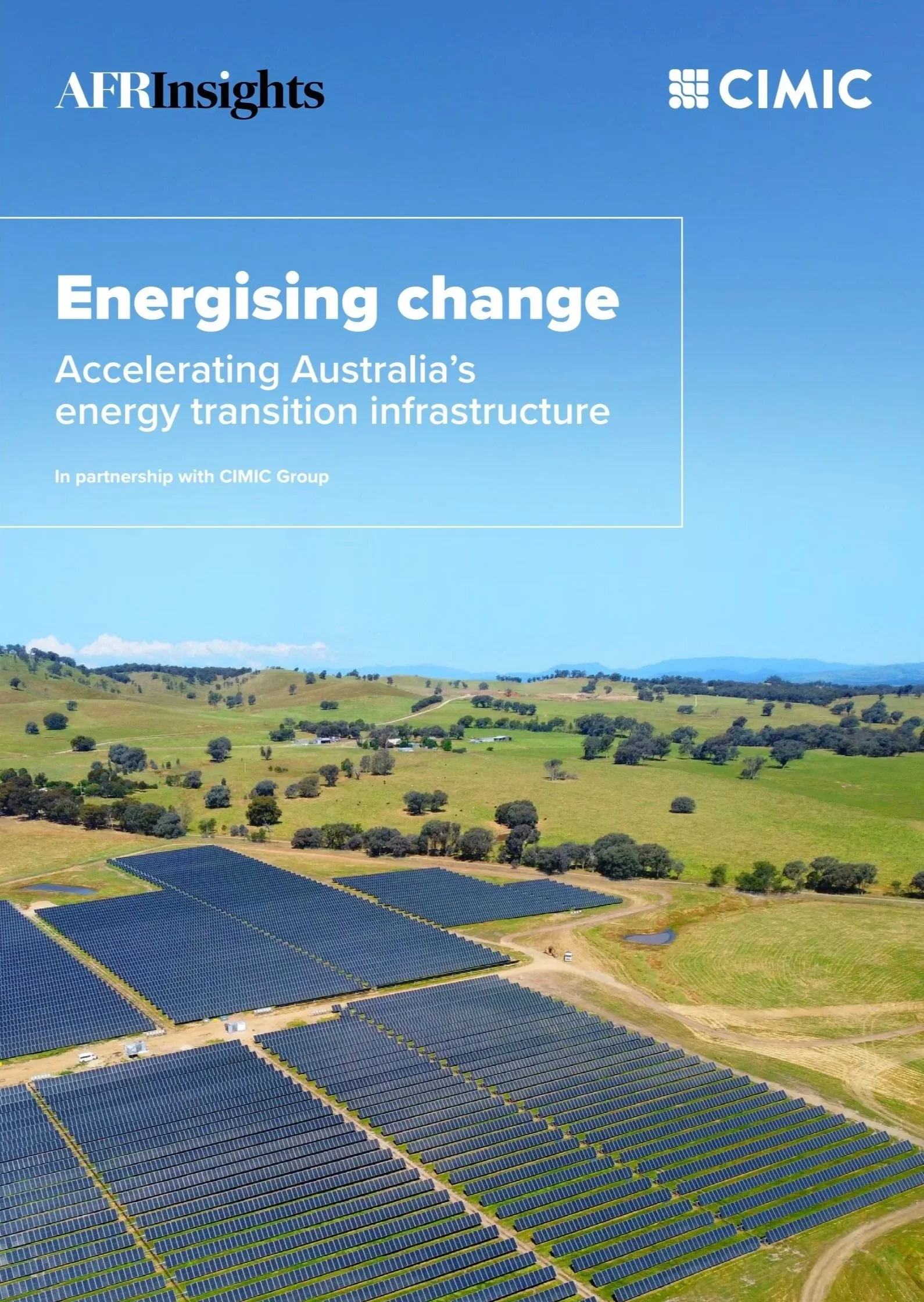 This AFR Insights report supported by CIMIC and authored by The Action Exchange, explores the cutting-edge ideas, successful examples and scalable innovations that can expedite the build-out of clean energy infrastructure.